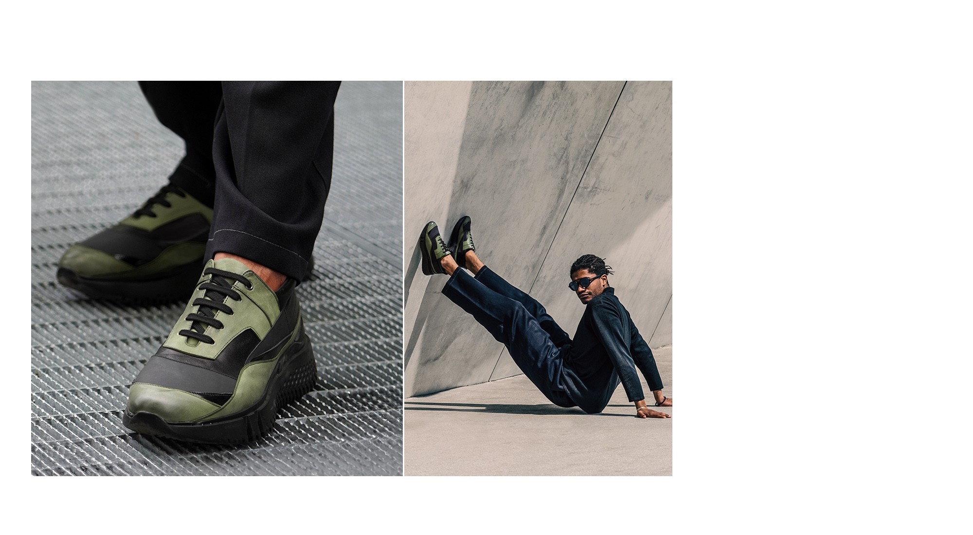 Les nouvelles baskets rehaussantes de GuidoMaggi sont dynamiques et avant-gardistes. Une basket basse surélevée, flexible, avec une semelle noire super légère. En veau vert vintage soigneusement mélangé avec un veau pleine fleur caoutchouté pour un effet naturel brillant qui crée un contraste exclusif. Elle ajoute une hauteur supplémentaire de 8 cm à votre taille pour des tenues inspirées du plus fabuleux style sport-chic. Fabriqué à la main et sur mesure, 100% made in Italy.