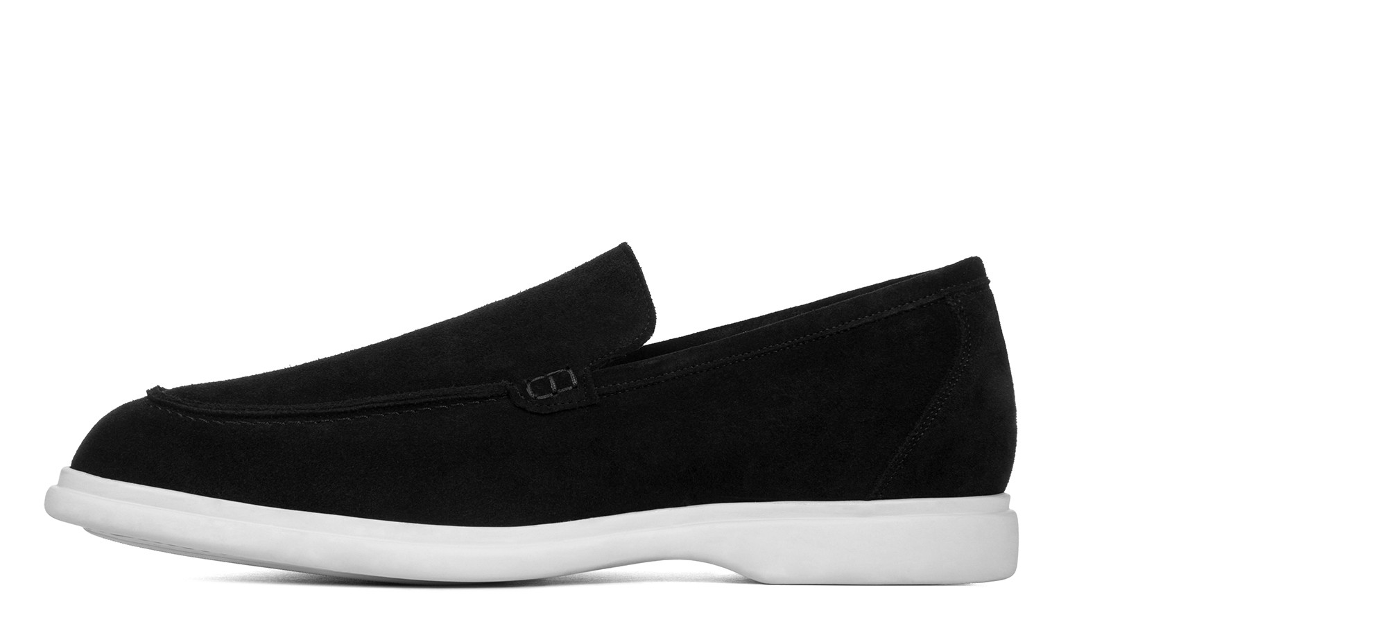 Élégant mocassin artisanal, caractérisé par une tige en daim noir doux. Ce modèle allie style classique e confort moderne, idéal en toutes occasions. La semelle en caoutchouc naturel ultra-flexible, entièrement fabriquée à la main, garantit une liberté di movimento maximale e durabilité.