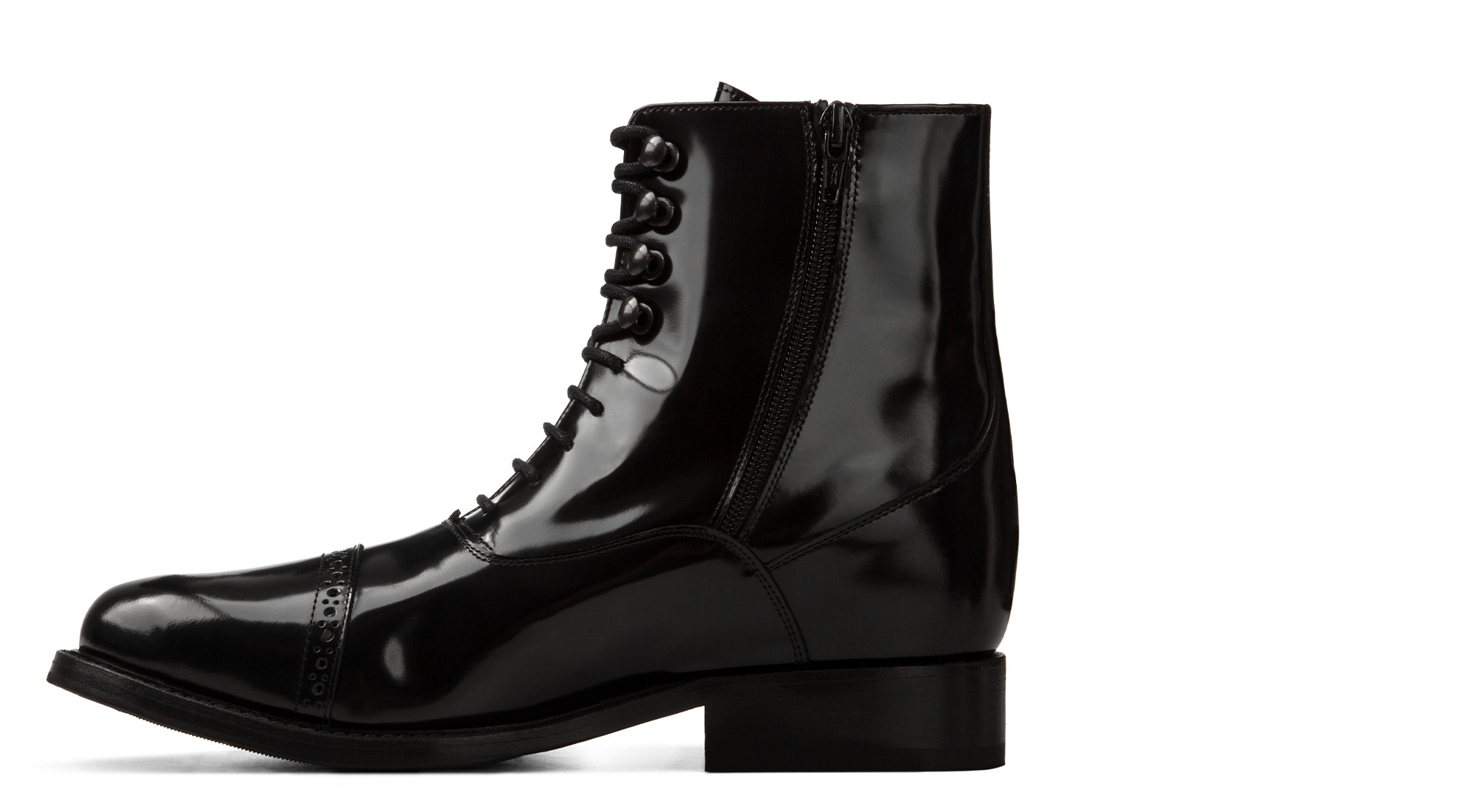 Le bottin Farnese en cuir verni noir est l'expression ultime du style luxe contemporain. Lumineux, élégant et riche en personnalité, il offre, avec sa semelle en cuir italien, une touche de classe aux tenues les plus recherchées et permet d'augmenter la stature jusqu'à 10 cm avec harmonie.