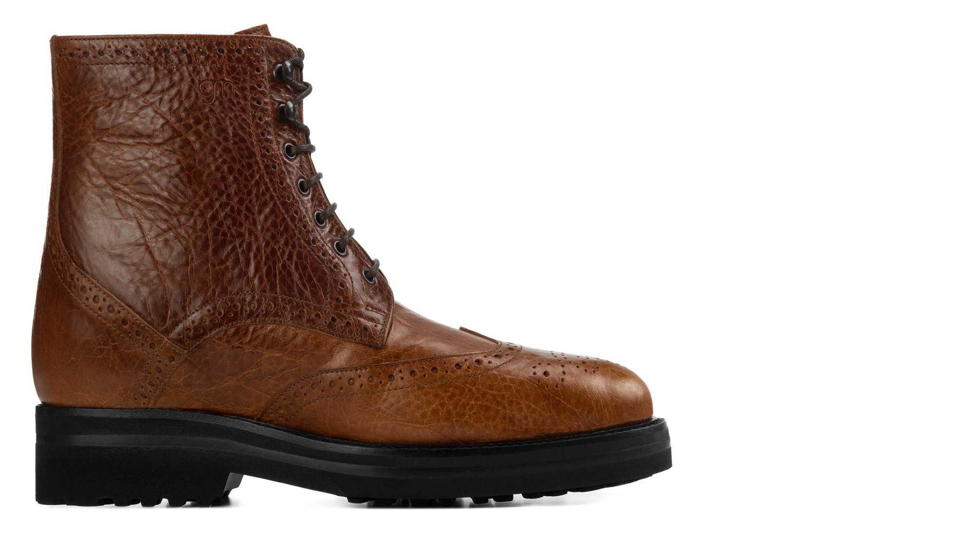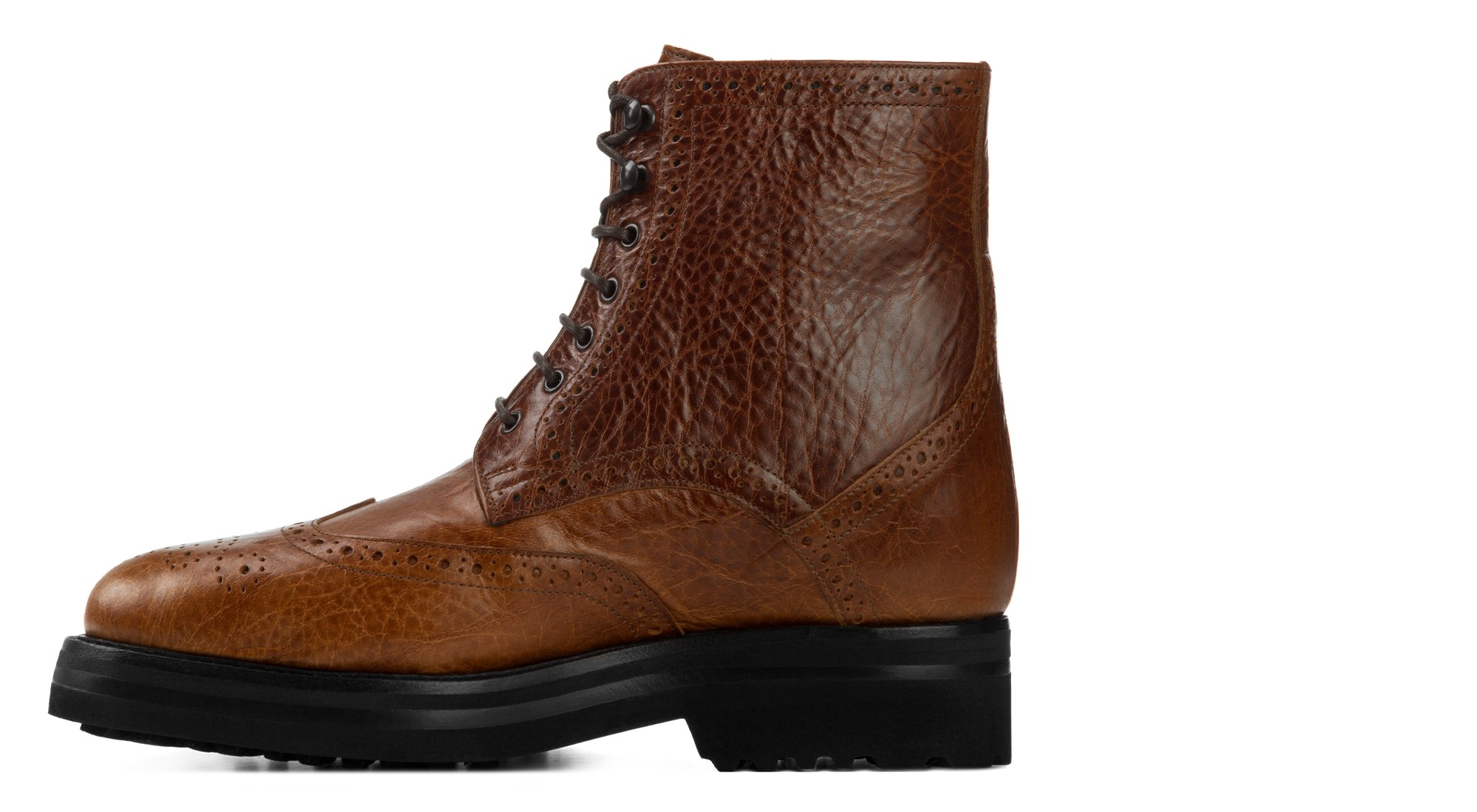 Le modèle Pontedera allie la robustesse du bottin au raffinement des détails brogue. Le cuir nappa martelé de Toscane, de couleur cuir naturel, transmet un sentiment d'artisanat et d'authenticité.
