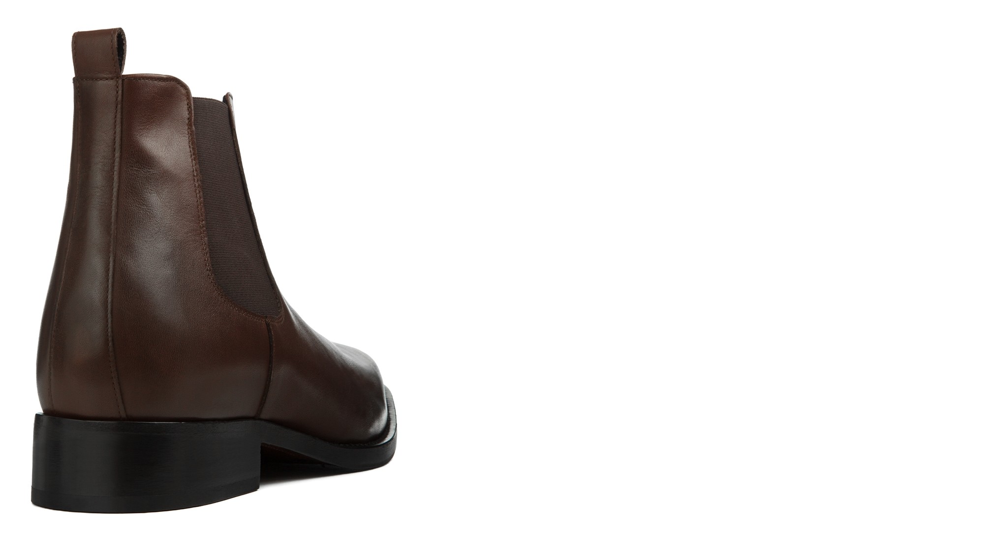 Le bottillon Chelsea San Zeno représente l'évolution d'un classique anglais revisité avec le style italien. Son bout légèrement carré, sa patine tamponnée plus marquée et son cuir pleine fleur italien lui confèrent une élégance naturelle.