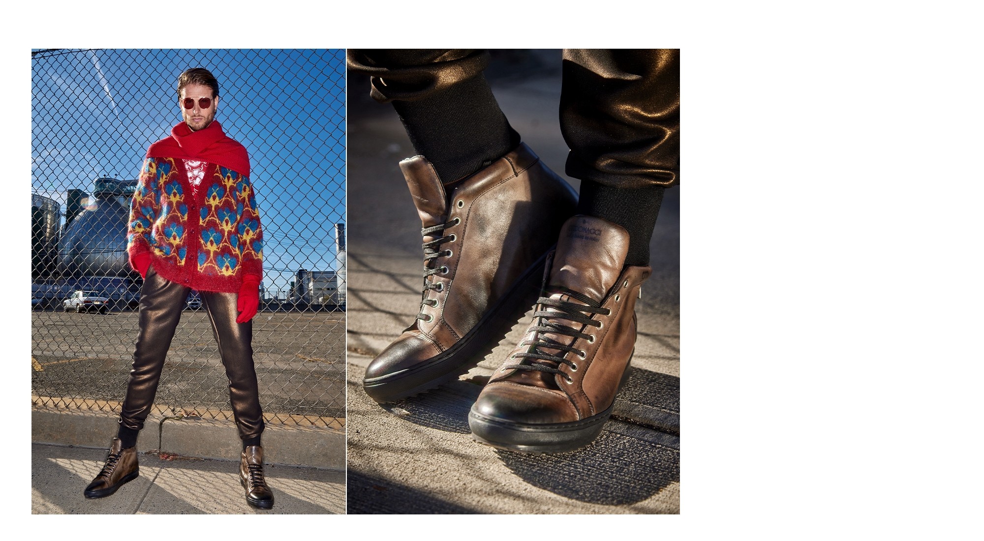 Baskets montantes faites à la main en cuir de veau noir, tamponnées à la main pour un effet vintage, fermeture à glissière latérale et lacets. La semelle en caoutchouc naturel garantit confort et stabilité.