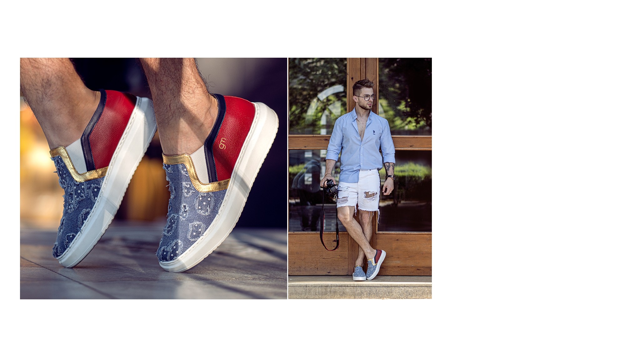 Slip-on spécial Coupe du monde 2018 faites à la main en cuir pleine fleur et denim étoilé mettant en vedette les couleurs de la Coupe du Monde inspirée par le drapeau national russe. Le rouge, le bleu et l'or se fondent parfaitement avec le tissu en jean pour créer une chaussure emblématique.