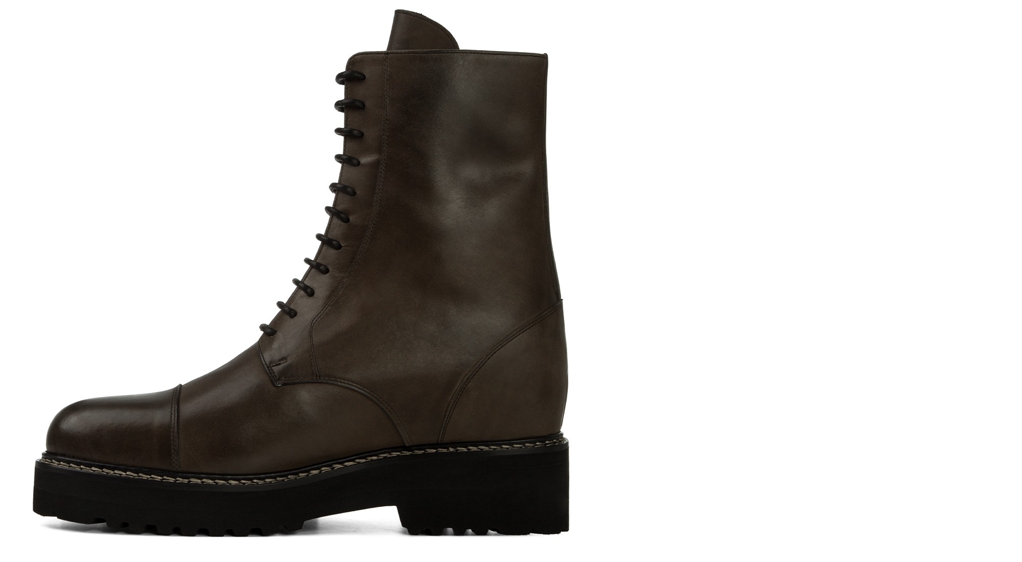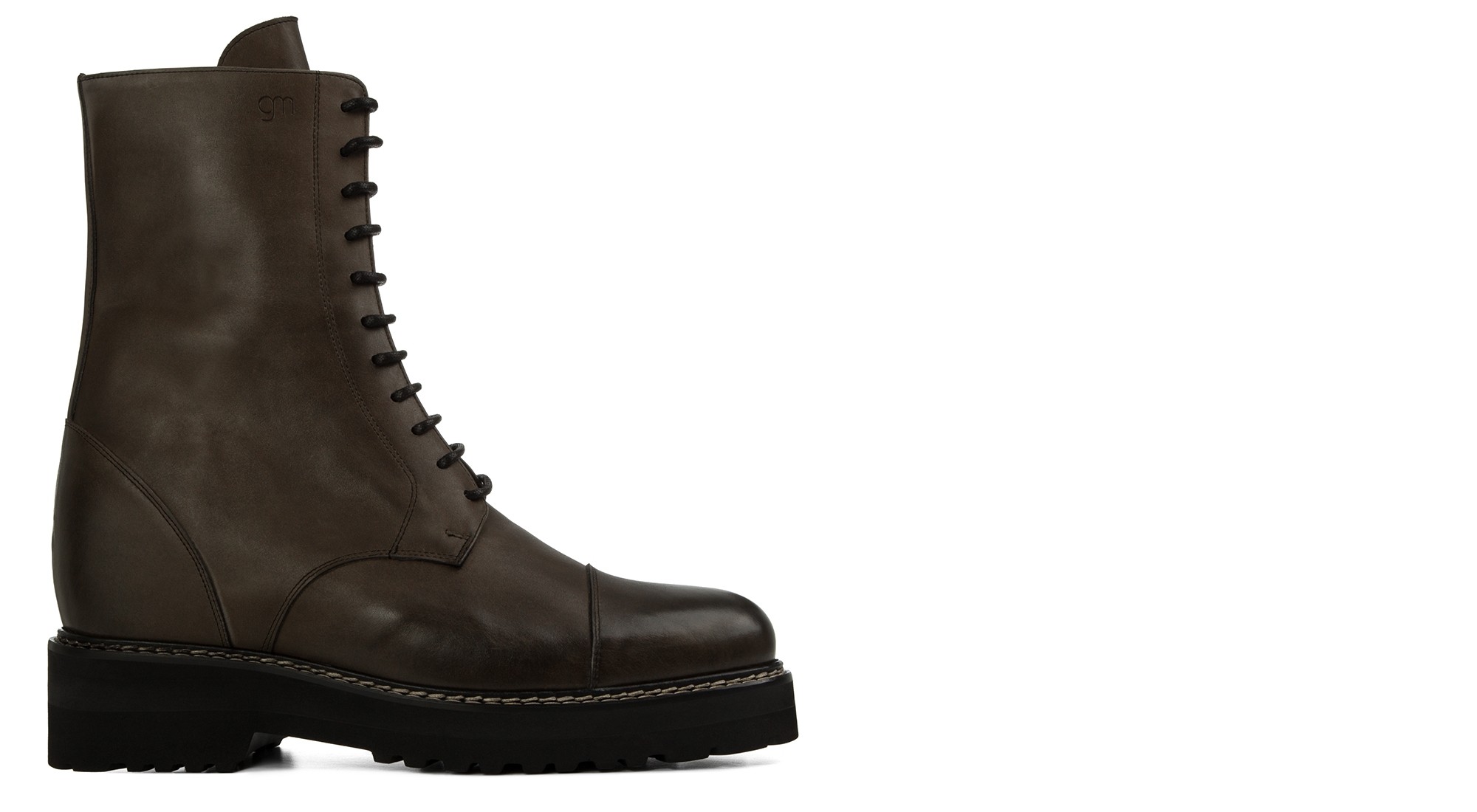 Profitez d’un gain en taille, grâce au tout nouveau modèle de bottines, le « P.C. Hooftstraat », realisé par la Maison GuidoMaggi. Le dessus est en cuir pleine fleur gris foncé. La doublure intérieure est en peau de chevreau souple pour vous assurer un confort optimal. Les semelles intérieure et intermédiaire sont en cuir véritable.