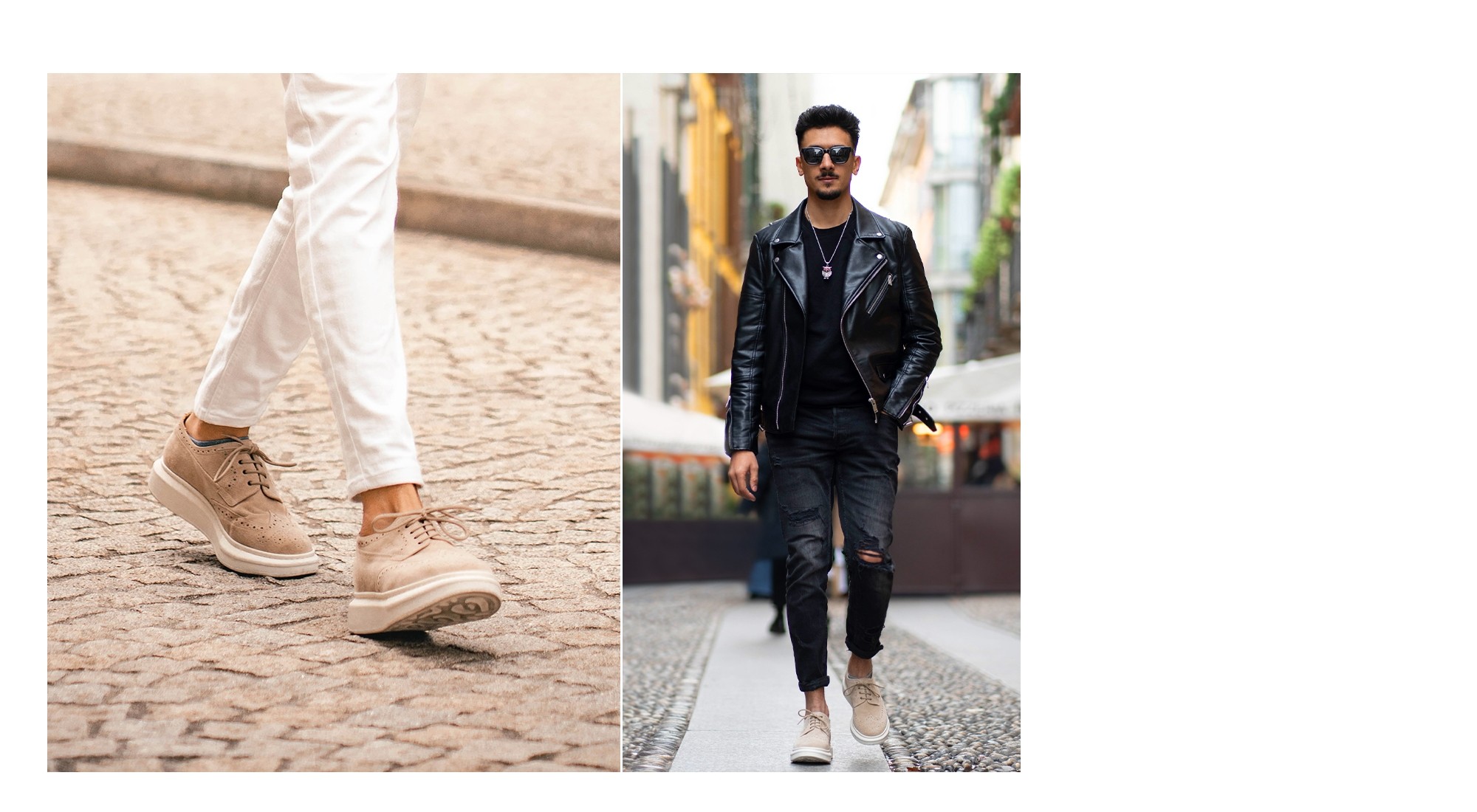 Un modèle hybride, unique et exclusif qui allie le dynamisme et le confort d'une semelle de sneaker à l'élégance classique du richelieu anglais. La touche de classe est le laçage derby qui définit son caractère et sa personnalité. La semelle marron est en caoutchouc super léger, la tige en cuir de veau velours beige avec coutures faites à la main et décoration en queue d'aronde. Idéal pour toutes les tenues, il donne jusqu'à 8 centimètres de plus en hauteur. Fabriqué à la main en Italie.