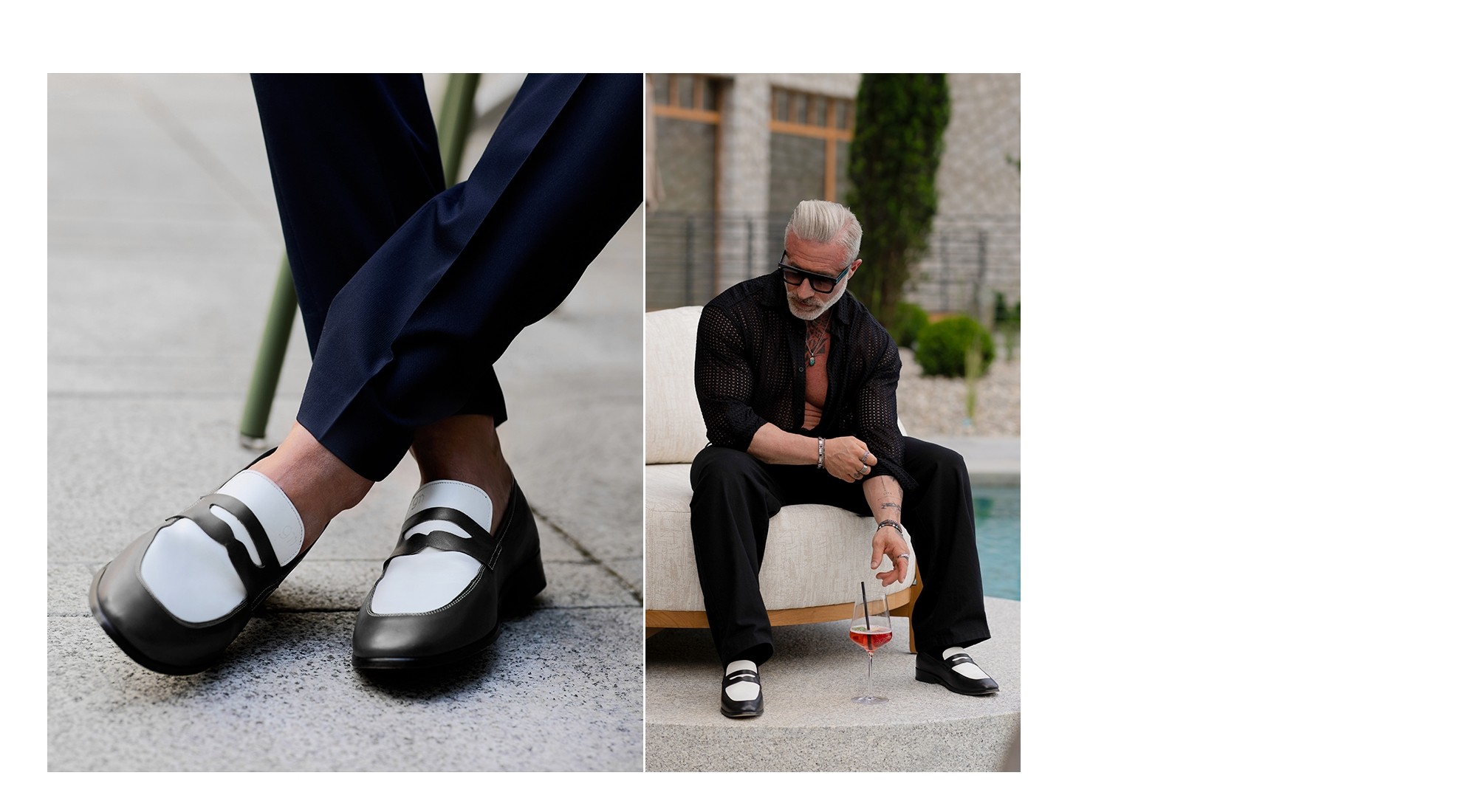 Penny Loafers avec rehaussement, avec une tige en cuir pleine fleur bicolore blanc et noir. Le style old money incarne une élégance raffinée et un confort optimal.