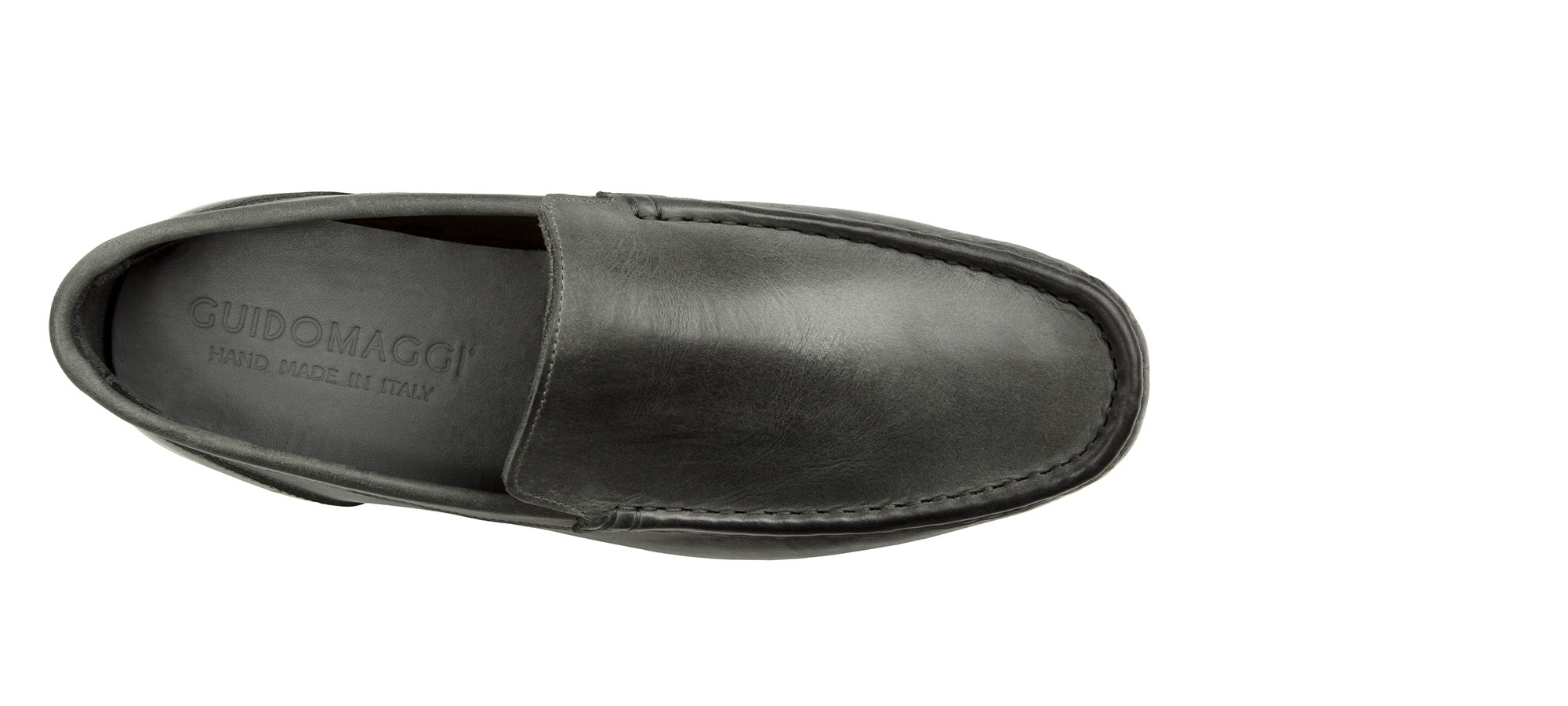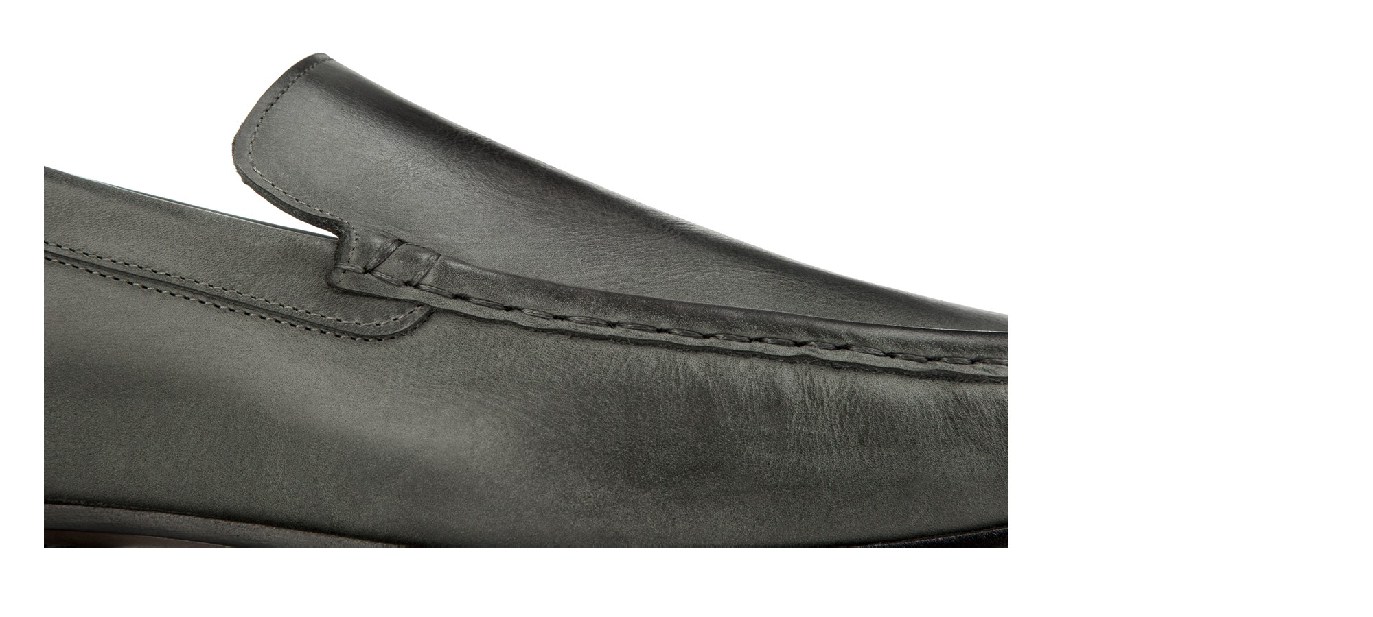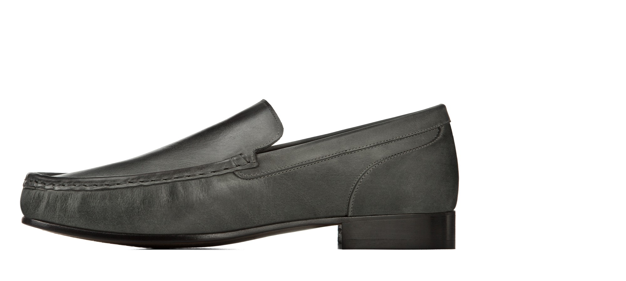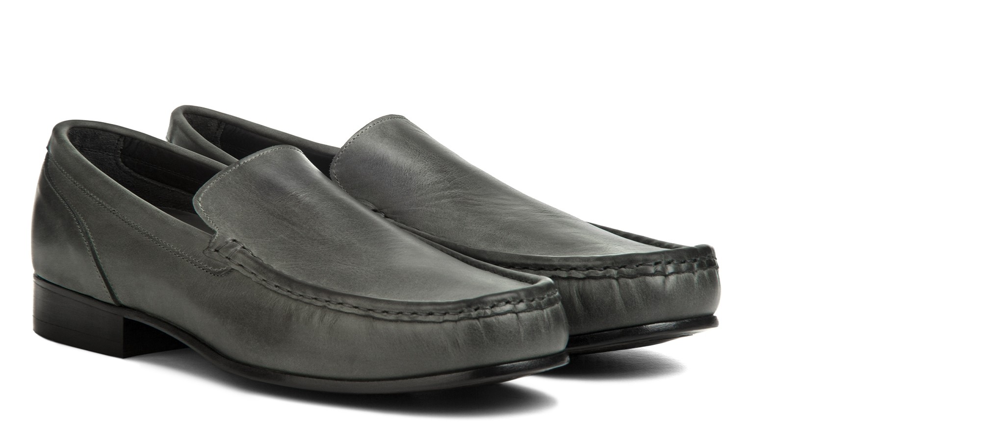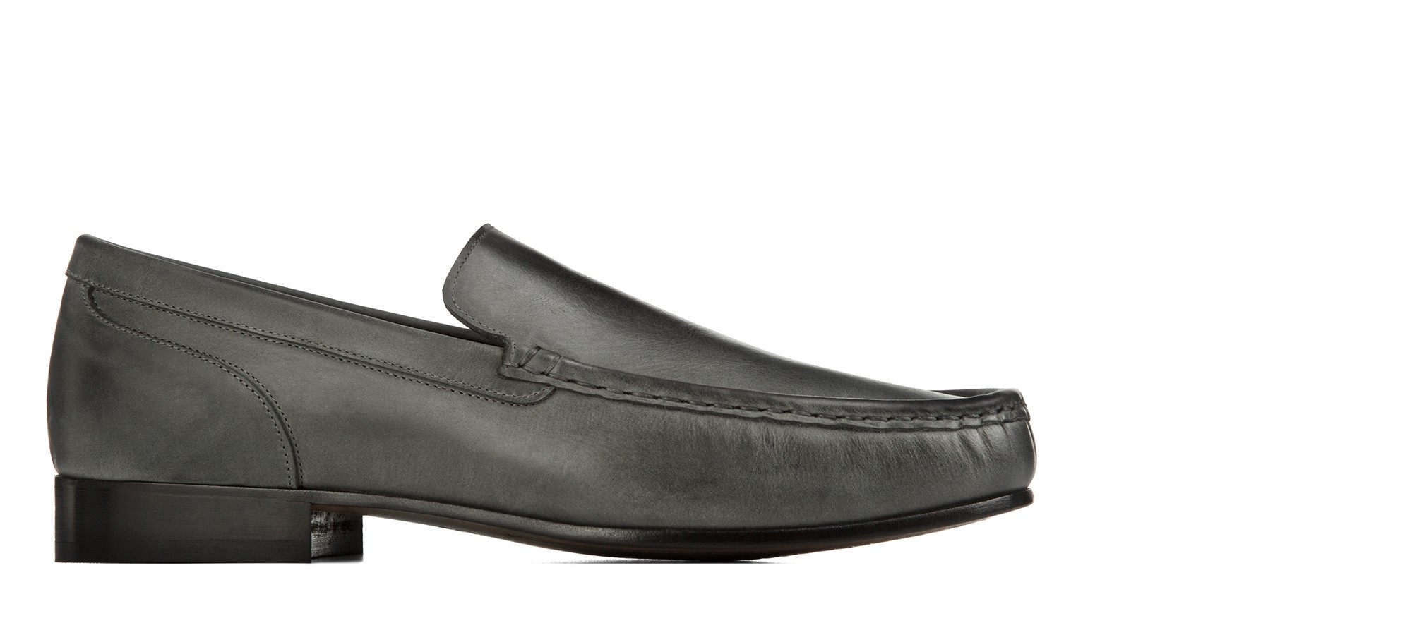 Mocassin réhaussant fabriqué à la main en cuir Cordovan de luxe d'une couleur grise particulière : un cuir précieux et rare, rendu unique par ses grains naturels.