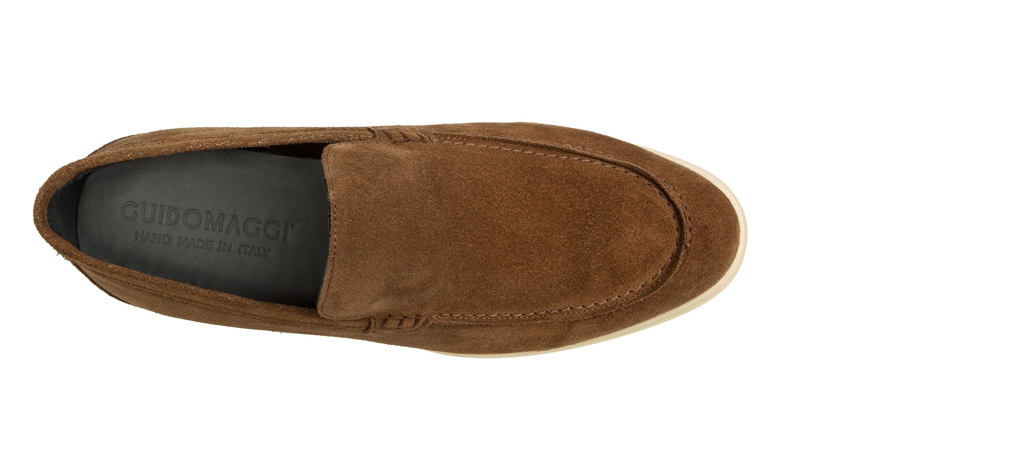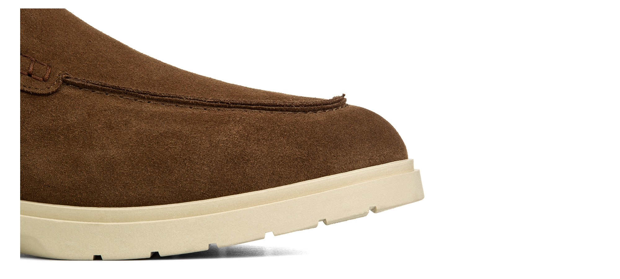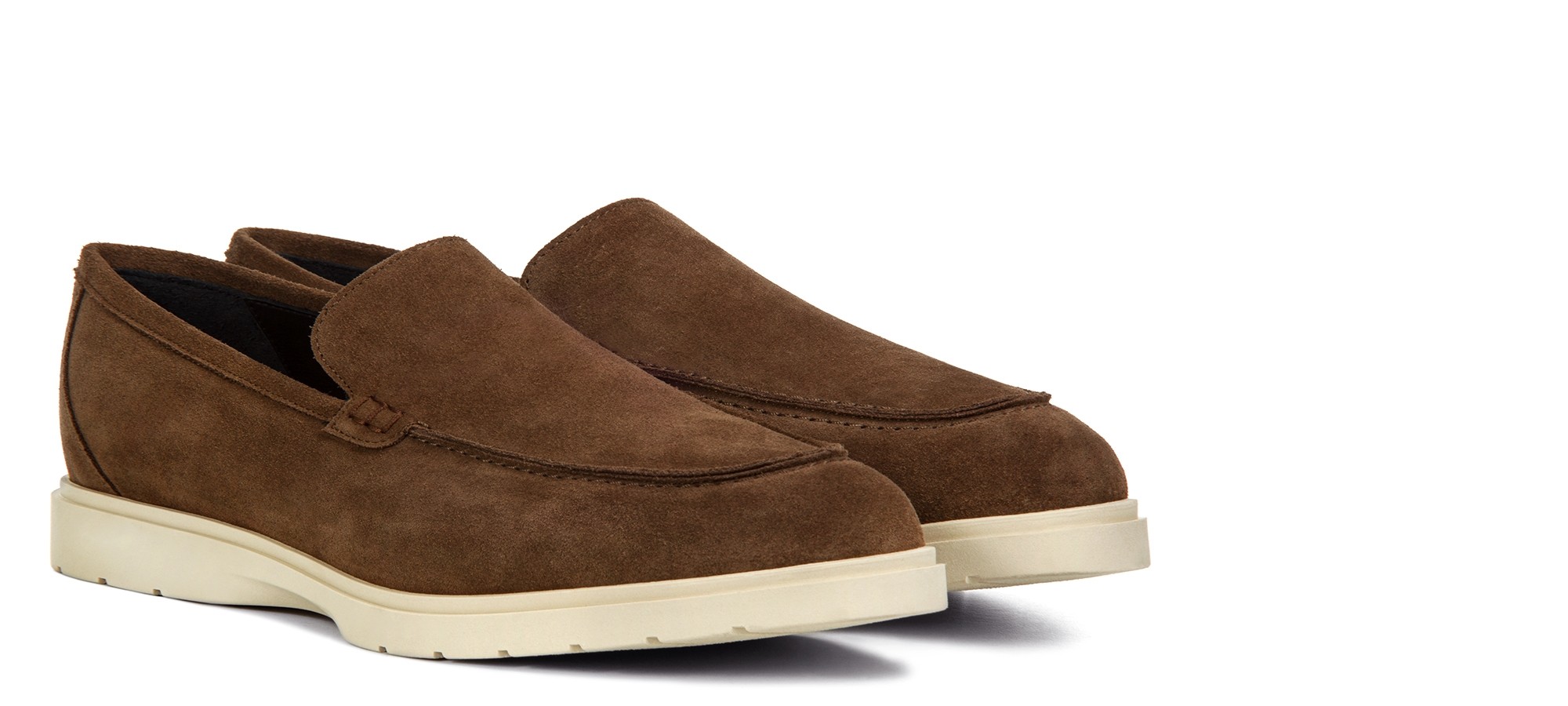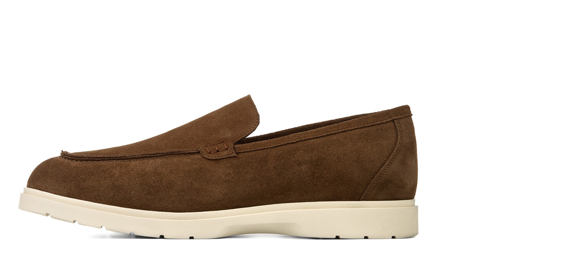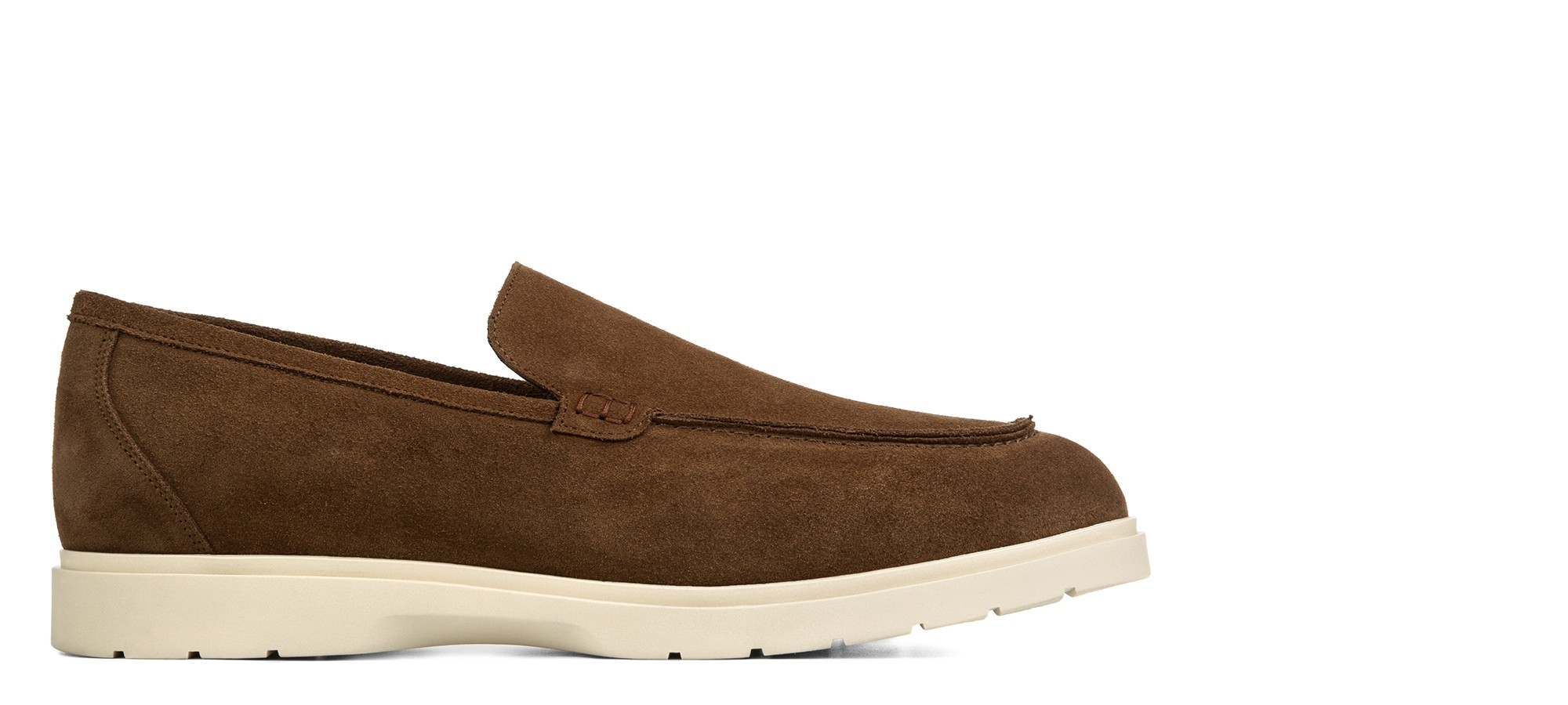 Mocassin rehaussants confectionné dans un riche cuir de veau velours marron, caractérisé par une semelle en caoutchouc crème ultra-légère. Un modèle à l'esprit informel et décontracté, parfait pour ceux qui recherchent une élégance relaxée sans renoncer à l'artisanat.