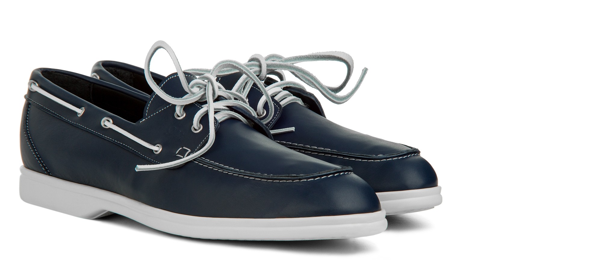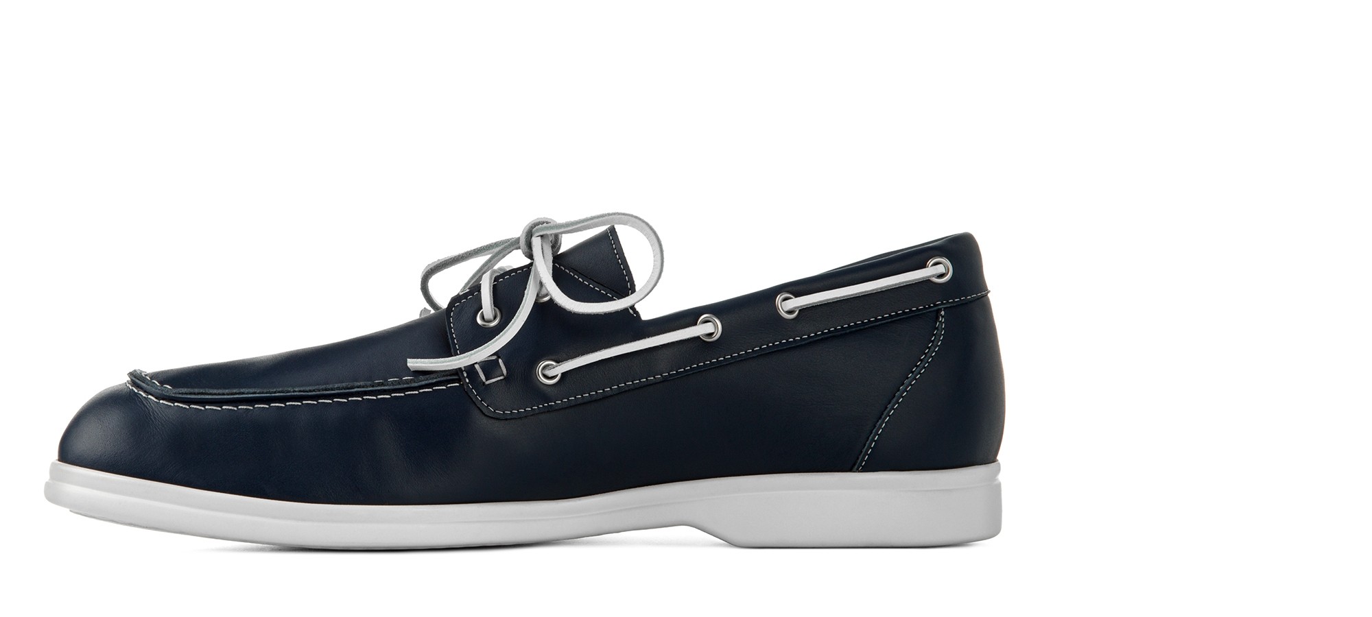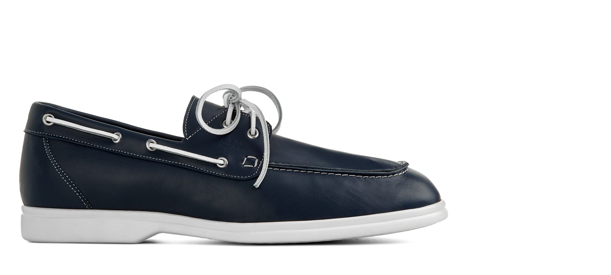 Mocassin bateau réalisé en cuir pleine fleur bleu, souple et résistant. Le design nautique avec lacets en cuir et coutures apparentes garantit confort et un chaussant enveloppant.